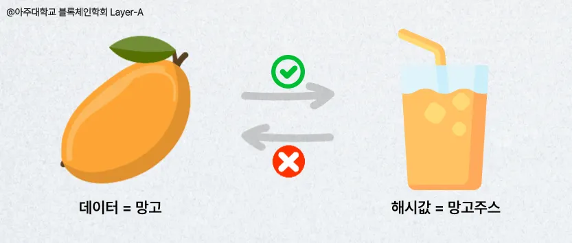 - 예시를 한번 볼까요? 🥭 ➡️ 🍹망고를 갈아 망고주스를 만들 수는 있지만, 망고 주스는 다시 망고로 돌릴 수 없습니다.