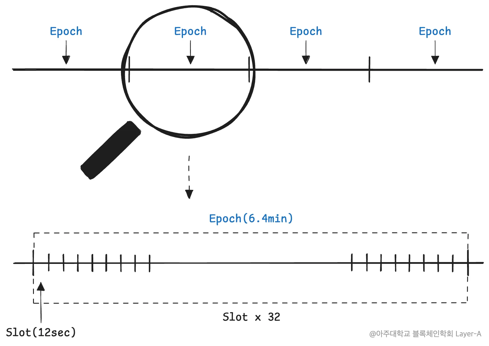 - 이더리움은 슬롯과 에포크라는 시간 단위를 통해 작동한다.